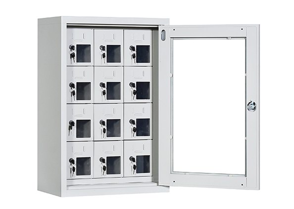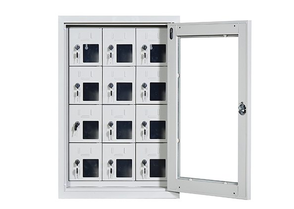 手機(jī)保密柜正面為對(duì)開(kāi)金屬邊框玻璃大門(mén),便于觀察柜內(nèi)情況,堅(jiān)固透亮,美觀大方。